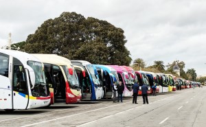 To find a Falla Especial all you need to do is follow the crowds. And the crowds were intense! Not only is the city of Valencia full of people but there were hundreds, yes hundreds, of buses that brought even more people from the outlying communities and cities. Here is a picture of 100 buses (I counted them) all lined up and there were more if you looked in the opposite direction! Amazing!