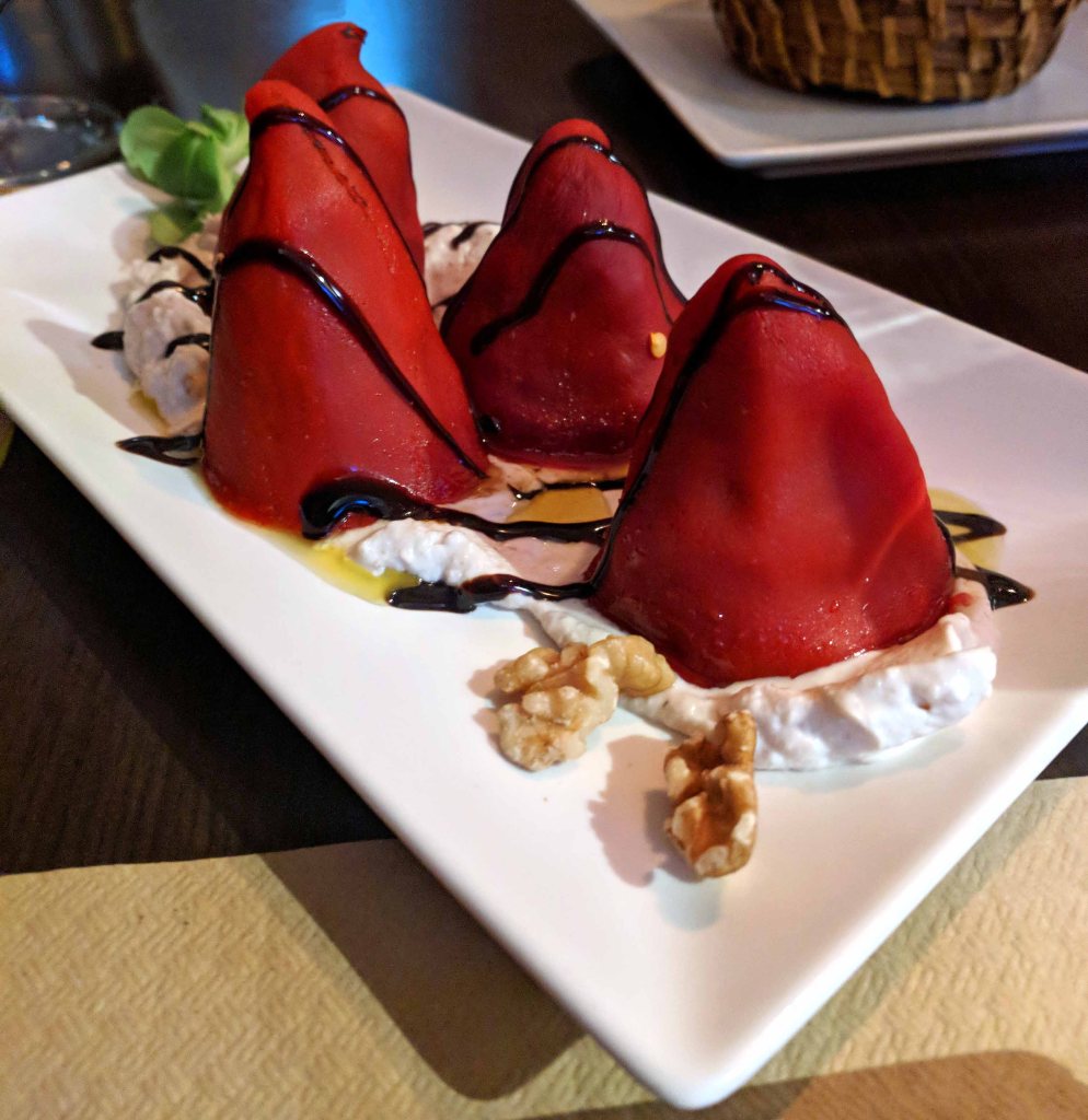 This dish was definitely an amazing find. Piquillo Peppers stuffed with veal, plums, apricots, pinions (pine nuts), walnuts and cheese followed by raviolis of pumpkin and duck confit with cream of dried tomato and red onion served at La Moma in Valencia! Oh Yeah! This one deserved an encoré so when our new friend Ryan suggested we all go out for dinner this is where we went.