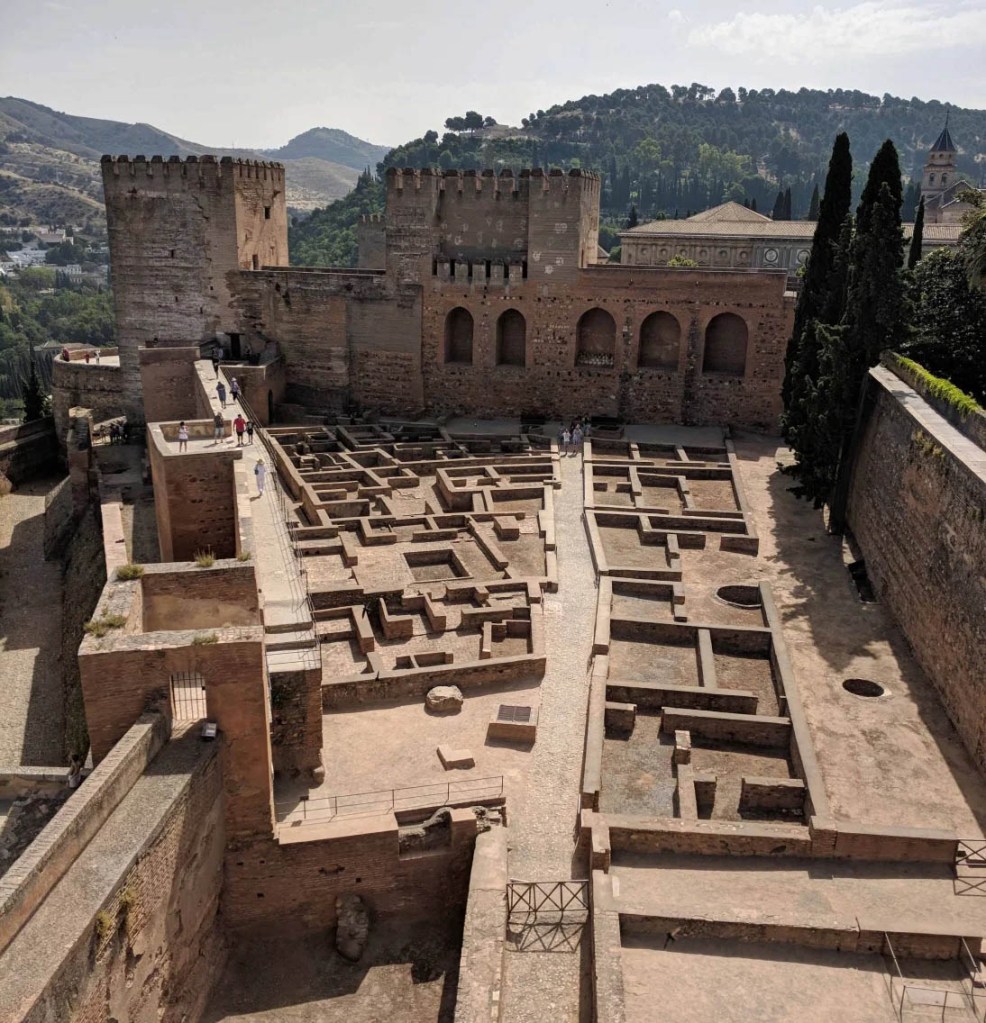To the west of the Nasrid Palaces stands the Alcazaba Fortress which housed the military, the barracks of the royal guard and the medina or court city. It is thought that the Alcazaba existed before the founder of the Nasrid dynasty, Muhammad I, arrived in 1237. Here we saw the remains of the houses of those who lived there as well as the dungeon where Christian captives were kept, waiting for their ransom to be paid by their families. We overheard a tour guide say that the captives were relatively well treated and each day they would be taken outside to maintain the gardens. Still, a captive is a captive.
