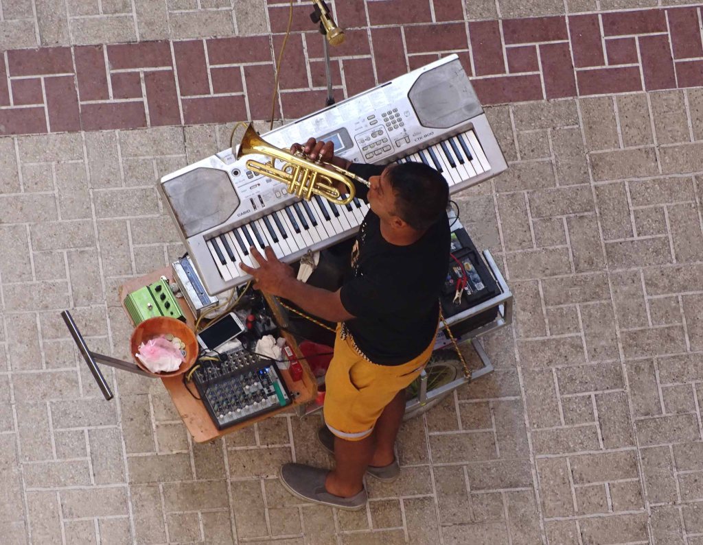 MUSIC: We have been entertained by musicians who stroll the streets or linger in the squares playing their trumpets, guitars or accordions sometimes with accompanying keyboards and vocals. At the nearby beach-side restaurants we enjoyed an elderly woman playing her accordion for tips. Further down the beach an elderly man was playing his accordion, also for tips. They both played quite well and we wondered if they were an accordion playing couple.