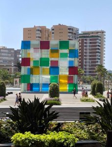 Malaga’s Centre Pompidou, is easily identified by the large colorful cube that sits above the building. It does attract your attention. Affiliated with The Center Pompidou in Paris, Malaga’s Centre Pompidou has access to more than 100,000 works that cover an artistic period that extends from 1905 to today.
