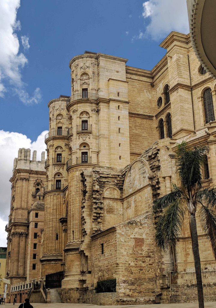 We are continually surprised by the beauty of the churches we have seen. In Málaga many of the exteriors of the churches have used various patterns or shades of pink, red and yellow paint. However in the heart of the city, the largest and most commanding of them all, the Málaga Cathedral, has no such decoration, the stunning architecture is enough.