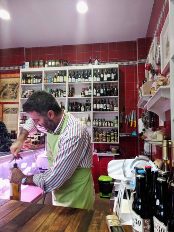 We chose from a wonderful variety of cheeses, including Payoyo, that he then sliced up for us. Payoyo was named Spain’s best cheese in 2013! he served the cheese slices came with crackers and the tastiest toppings including mermelada de alcachofa or artichoke, smoked tuna and pate de tagarninas (the edible root of the golden thistle plant also often called the Spanish Oyster Plant). Pepe asked for some bowls so he could add the nuts and raisins he had purchased elsewhere completing our ‘picnic’. I love the ‘anything goes’ attitude here!!!