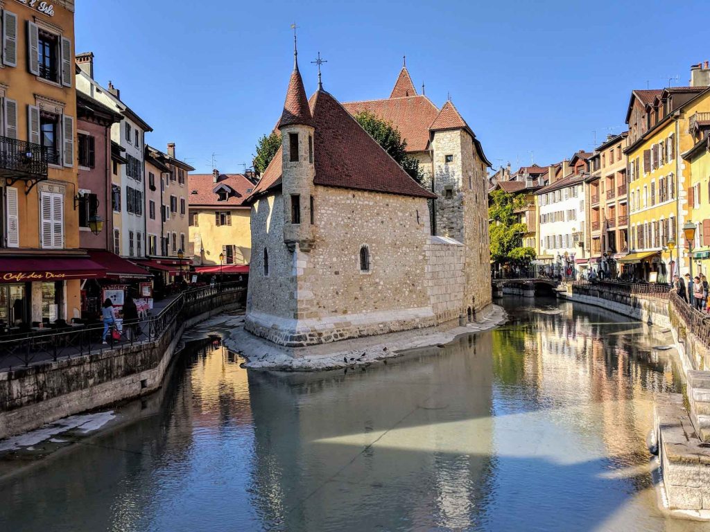The idyllic town of Annecy has three canals running through the old city and standing on the Point Perrière, you will be facing the much photographed Palais de l’Île, built in the 12th century. The palace of the island was built to look like the prow of a ship and is located on an island in the River Thiou. The building began as a prison then was used as a coin minting workshop, a dukes castle, a senior citizens home, military barracks, back to a prison and today an architectural and heritage site open to the public.
