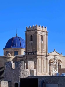 Jaume I conquered this city in 1265 from the Moors but it wasn’t until 1334 that a small Catholic church was built overtop the existing mosque. In 1556 a second larger church was completed on the same site however it collapsed in 1672. The third and present Basilica, built between 1672 and 1784 has one large square tower, a beautiful baroque entrance and two domes covered in brilliant blue tiles that catch your attention as you explore the surrounding town.