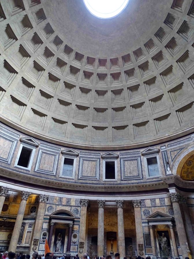 Almost two thousand years after it was built, the Pantheon’s dome remains the world’s largest un-reinforced concrete dome. The height and diameter of the interior circle are the same at 142 feet (43 meters). If you envision the bottom half of the dome to be completed you would see a perfect sphere just touching the floor of the church. Incredible! It is also considered one of the best preserved of all Ancient Roman buildings making a visit inside the Pantheon an extraordinary and uncommon opportunity.