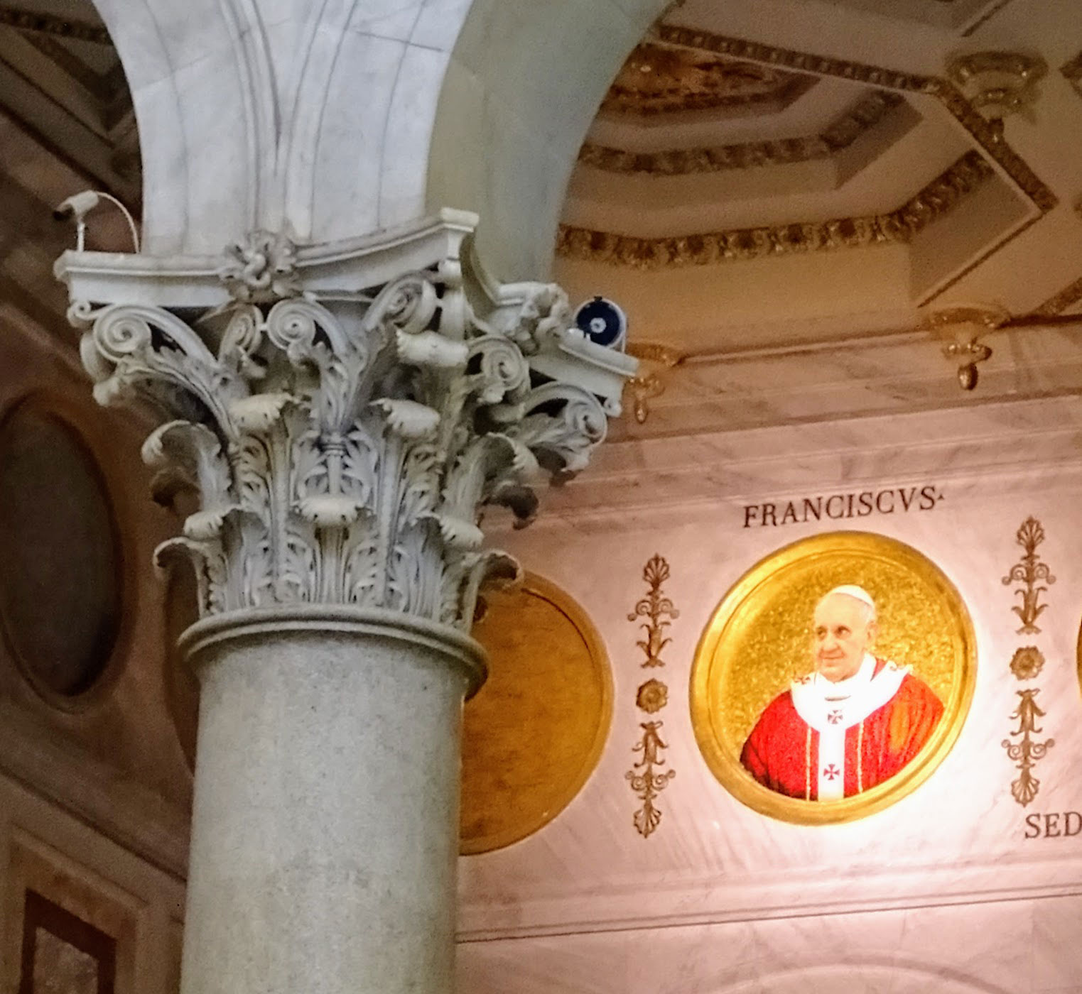 One other church we visited in Rome, the “Basilica of St. Paul Outside the Walls”, highlights some papal history as well. Up along the very top of each wall in the resplendent St. Paul’s Basilica is a painting of every Pope. A spotlight cheerfully lights up the painting of the current Pope Francis I.