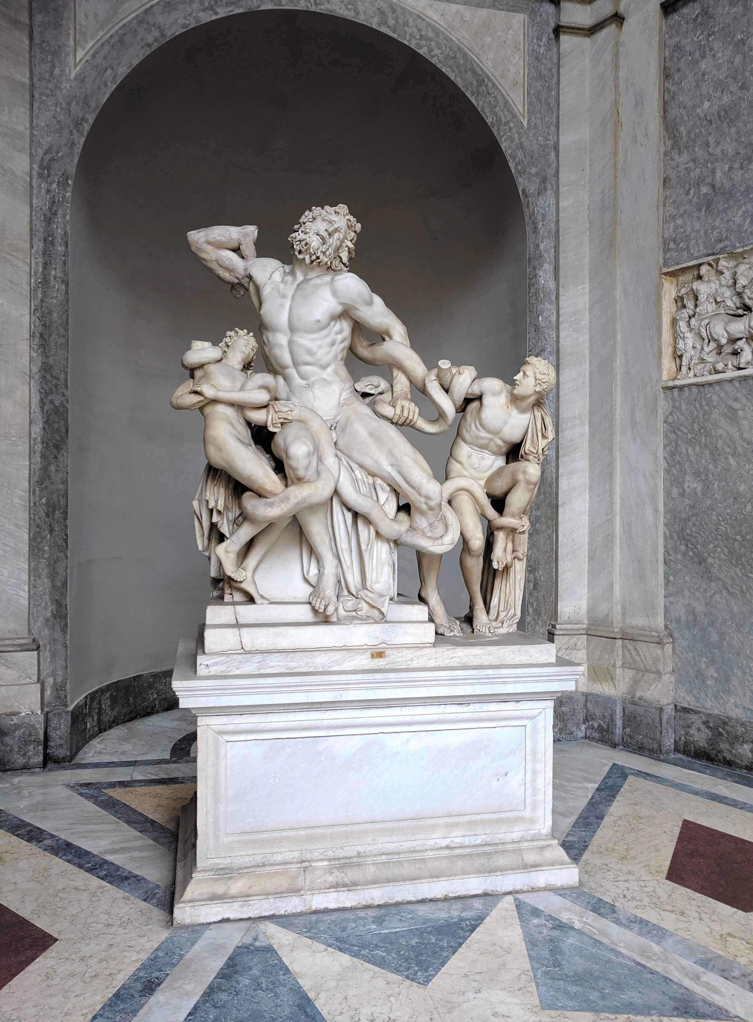 In Virgil’s book, Aeneid, he writes about the Trojan horse. We all remember the story of when the Greeks leave a giant wooden horse outside the gates of Troy. Laocoön, a Trojan priest, had warned the Trojans not to bring in the horse so two Greek gods sent a couple of sea serpents to kill the priest. Once the priest was dead the Trojans rolled in the horse and the Greeks who’d been hiding within the horse jumped out and destroyed Troy. The statue depicts Laocoön and his sons fighting the losing battle with the serpents.