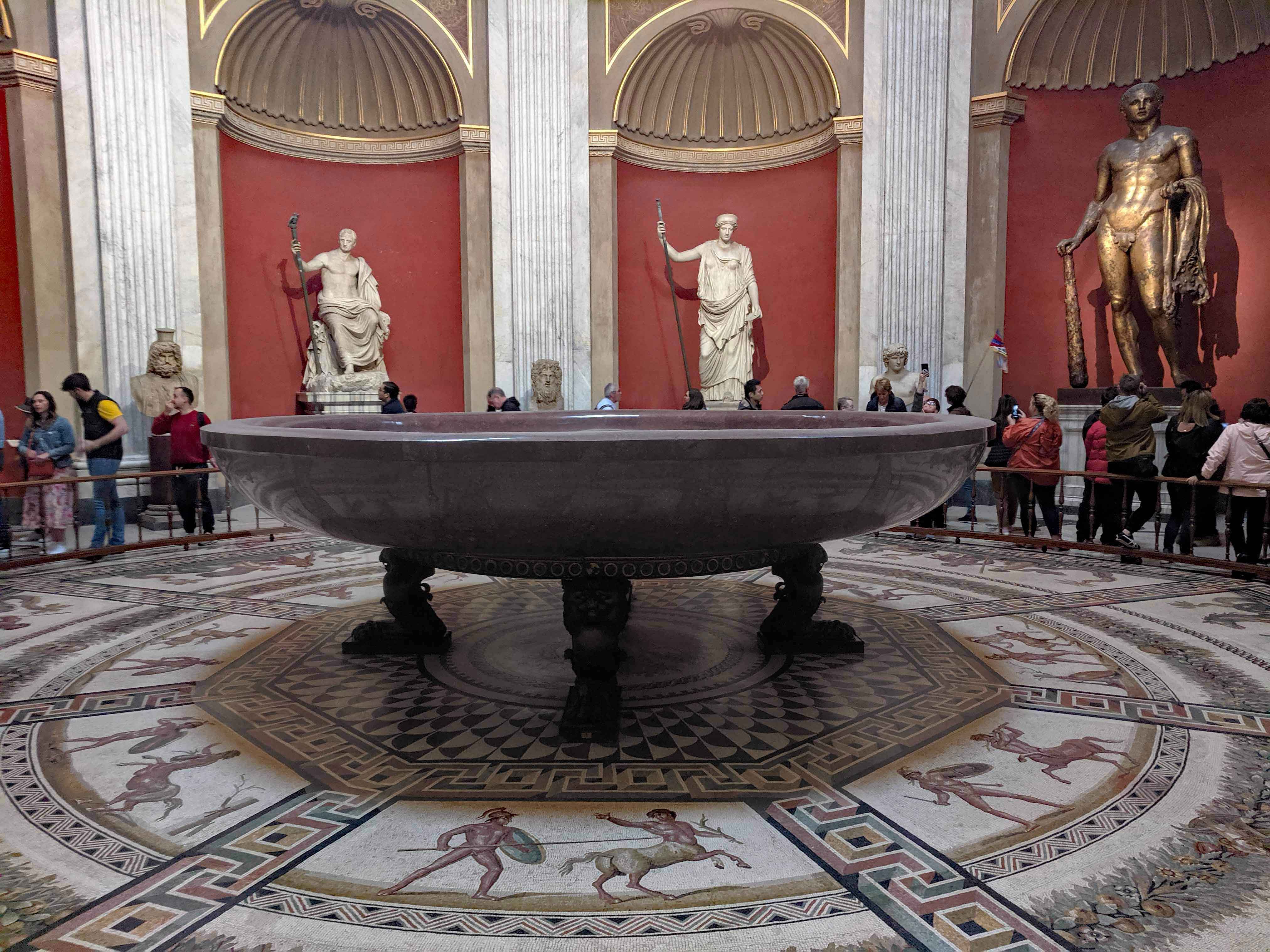 Some of our highlights of the Vatican museums were the incredible art of Michelangelo’s Sistine Chapel, we absolutely loved the 4 outstanding Raphael Rooms painted by Raphael and his workshop, then there were paintings by Bellini, Titian and Caravaggio, and a smaller collection of modern Religious Art from artists Paul Gauguin, Marc Chagall, Diego Rivera, Jacob Lawrence and Salvador Dalí. We came across a beautiful gilded bronze statue of Hercules. The statue was found in 1864 beneath yet another courtyard in Rome. It was lying horizontally in a trench and covered by a slab of travertine with a message carved on it saying the statue had been struck by lightning and, following Roman custom, had been granted a ritual burial. The statue has been dated between the 1st and 3rd century A.D.