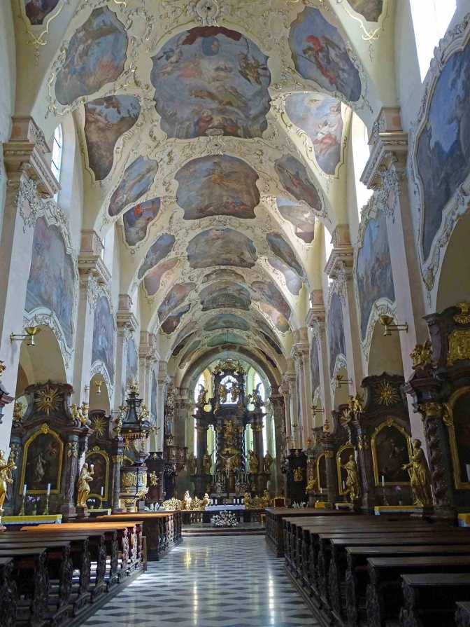 Basilica of the Assumption of the Virgin Mary – this church in the Strahov Monastery and the ceiling is extraordinary. We learned that a Gregorian choir sings during masses and wish we could have heard that.