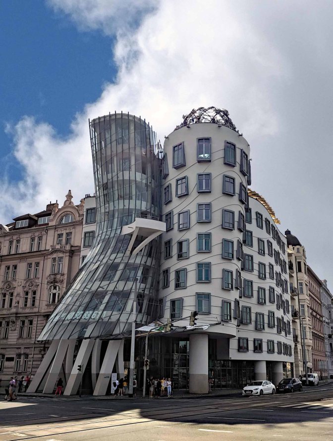 The tower made of rock represents Fred and the glass tower represents Ginger. Officially named the Dancing House, it won Time Magazine’s design contest in 1997.