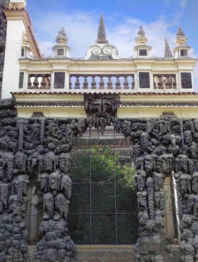 In another corner of the garden is an enormous, bizarre, seemingly out-of-place, stalactite gray wall. We found an owl refuge next door and were able to see four birds perched high in the enclosure. We also nearly stumbled across a peaceful peacock grazing at the edge of a lawn. There was a fish pond and fountain and an invitation to bring bread and feed the ducks and fish. The gardens are full of Greek mythological characters and statues.