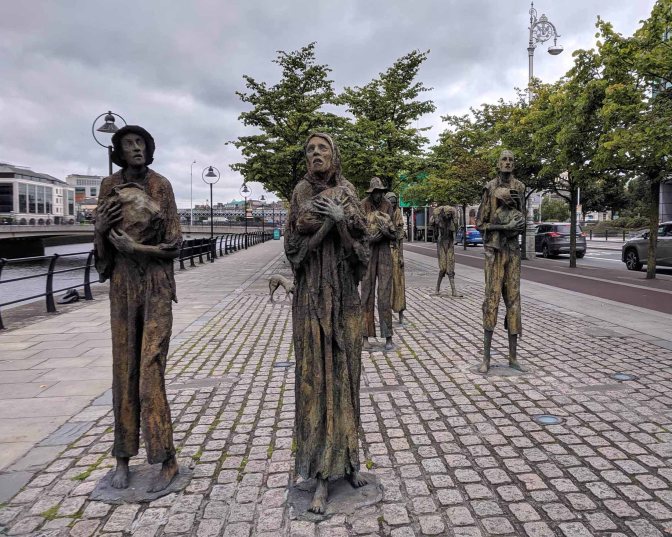 During the devastating potato famine between 1845-49, referred to as the Great Irish Famine, dozens of workhouses and soup kitchens were set up trying to feed the thousands of starving people arriving from the countryside. Between 1.0-1.5 million Irish citizens died and 2 million were forced to emigrate during the Great Famine, although the population of Dublin increased due to the number of starving hordes fleeing to the city. There is a large poignant art installation in Dublin we found that reminds all of the suffering during the Great Irish Famine.
