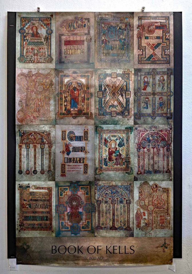 The Book of Kells was never completed and there are missing pieces and at some point in time, fearing further Viking raids, monks buried it in the ground. During the time of Cromwell, around 1653, the Bishop of Meath gave the book to Trinity College for safekeeping. It has been on display to the public since the mid-19th century.