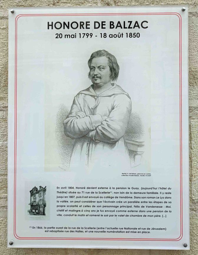 He is seen everywhere is Tours. Honoré de Balzac (1799-1850), born in Tours, was a French writer. He wrote one of the more important novels of French literature, called La Comédie Humaine or The Human Comedy. He was a prolific writer who published more than 90 novels and stories of his own creation between the years 1829-1855. (3 of his books were published after his death) He also wrote additional novels using pseudonyms. Balzac was read and admired throughout Europe, strongly influencing the writers of his time and the next century.