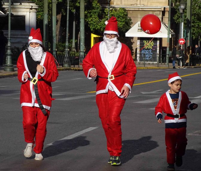 We arrived in Athens on Friday the 13th of December and two days later we left our apartment early to catch our first Christmas event, Athen’s Santa Run. All participants wore identical Santa costumes and attached long white beards. A great fundraiser and the participants seemed to be having a lot of fun.