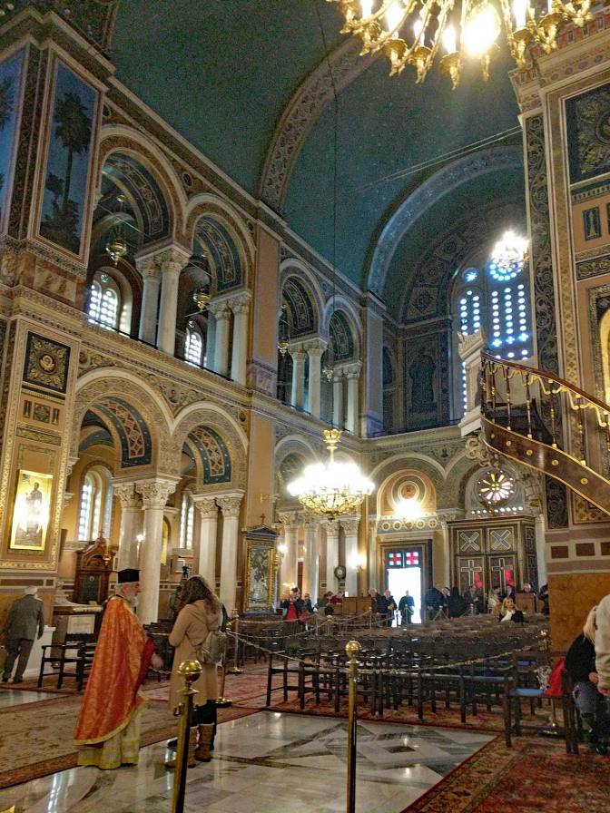 Midnight Mass Service is said to be an important part of Christmas for many Greeks. Although we did not attend a Christmas Eve Mass we did attend a Roman Catholic service in english the following night, on Christmas. It was at the Cathedral Basilica of St. Dionysius the Areopagite. The church was dedicated to Saint Dionysius the Areopagite, a disciple of the Apostle Saint Paul and the first bishop of Athens.