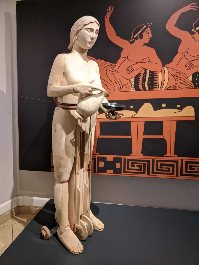 The culmination of technology was in the Hellenistic period (323 – 30 BCE), with mechanical inventions, including the automata named Philon, a human-like robot maid. In her right hand she held a jug of wine and when the guest placed a cup in the palm of her left hand, she automatically poured wine into the cup.