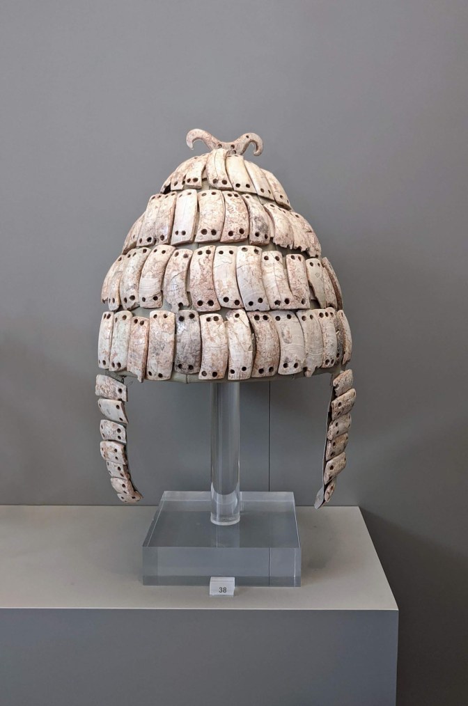 A helmet with cheek guards made of boar’s tusk was pretty cool. The ancient bronze swords with gold hilts were beautiful.