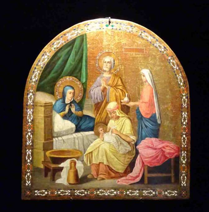 A second group of rooms exhibit a wonderful collection of religious icons. In 2014 the museum received sixty-five portable icons from the art collector Zacharias Portalakis. The art pieces range from the 15th – 20th century and are in very good condition. There is a triptych painted 1755-1779 by Cretan artist Zacharias Kastrofylakas that caught our eye as well as this lovely Russian icon entitled Birth of the Virgin.