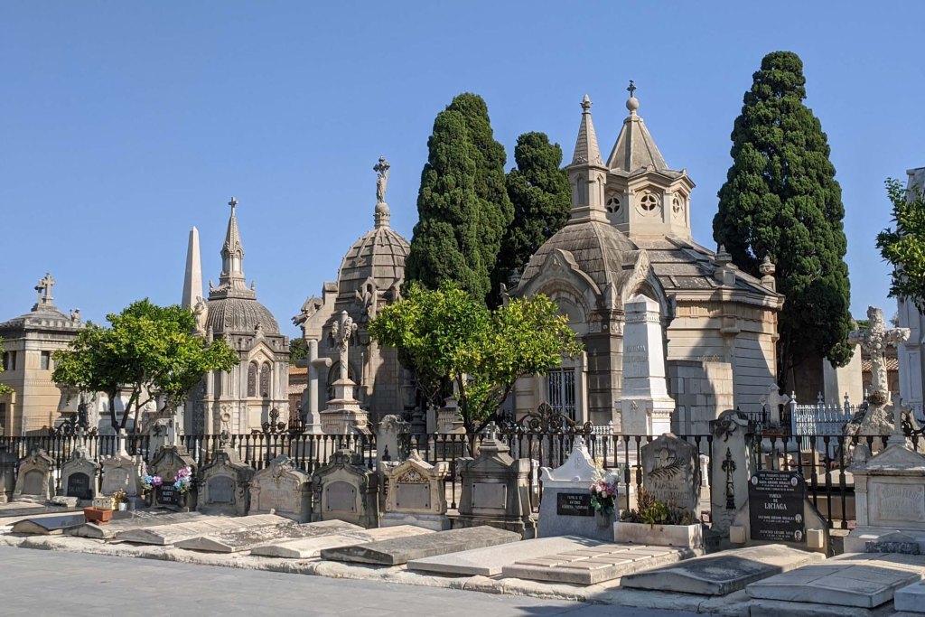 Cemeteries up until the mid 18th century were always right next to a church. But in 1787, King Carlos III issued a Royal Order that for health reasons and practices, would move cemeteries to far outside the city. Work began on the General Cemetery of València in 1805 and it was officially opened in 1807. The Cemetery has been enlarged a number of times and today is huge. Up until 1988 cremation was prohibited in Spain but today there is an avant-garde crematorium on site. Walking through the cemetery we noticed there are primarily two distinct styles of graves.