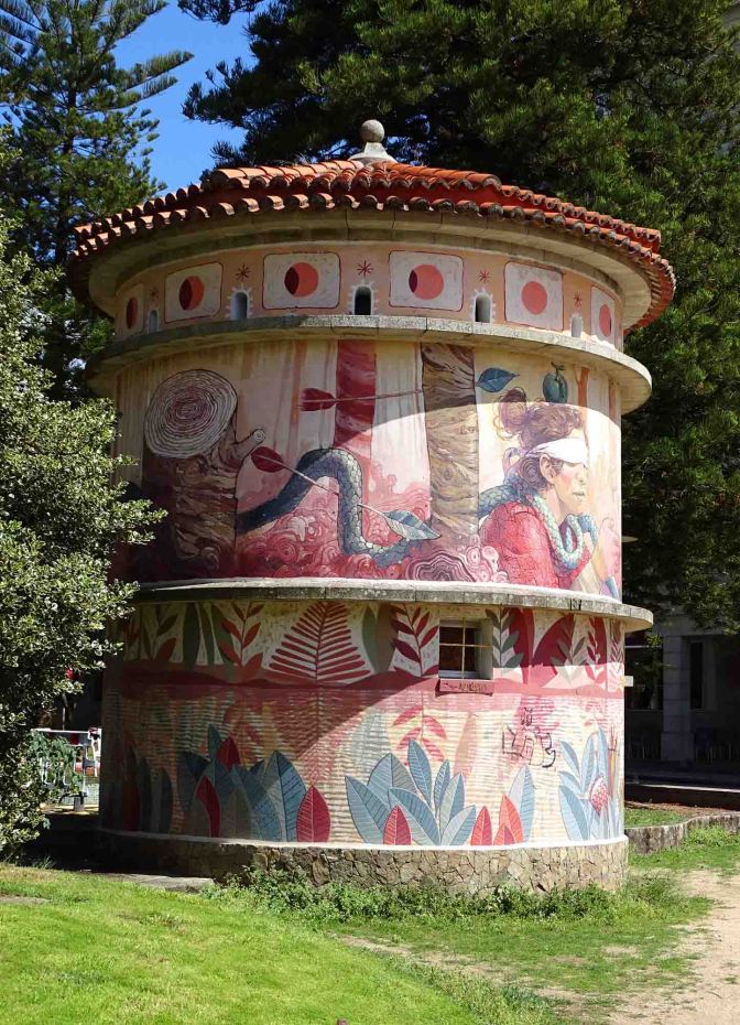 The Alameda was an ideal place for us to take a leisurely stroll. We discovered children’s play areas, a small pond, the circular dovecote painted with colorful scenes, above and a large octagonal kiosk that had around its base, beautiful ceramic tiled pictures of Pontevedra and the surrounding region.