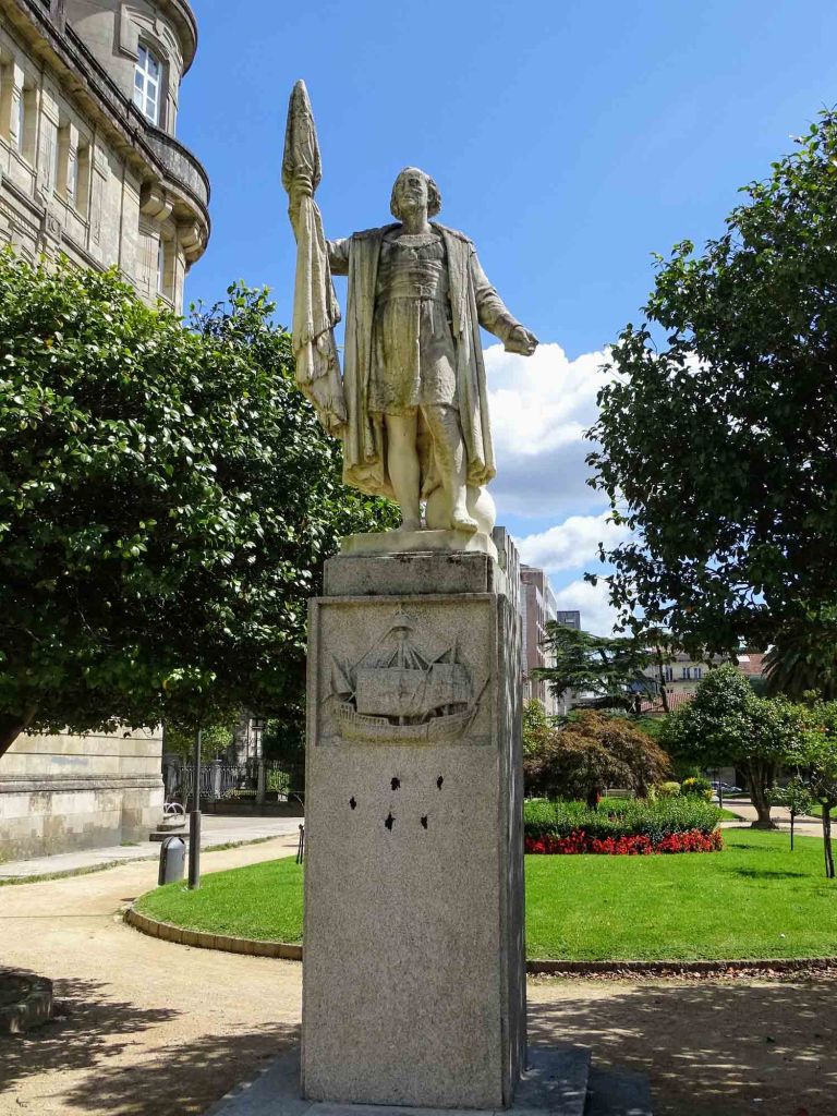 We found a tall monument dedicated to the heroes of the battle against Napoleonic troops during the War of Independence. There were smaller statues placed throughout the gardens and then a medium sized statue of Christopher Columbus. The carrack Santa Maria, one of Christopher Columbus’ ships, originally named La Gallega (“The Galician”), was built in Pontevedra.