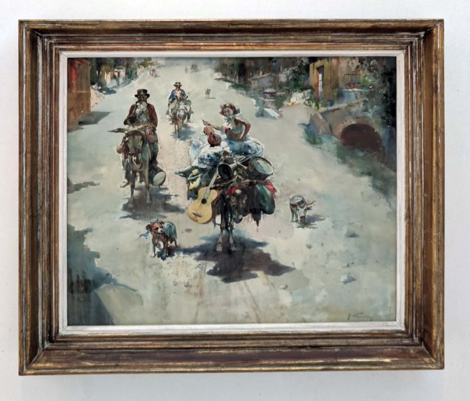 The Museum of Pontevedra opened to the public nearly 100 years ago, in 1929 and they have expanded to fill 6 different historical buildings throughout town. A couple of the sites are currently closed and being renovated. The museum focuses primarily on Galician and Spanish history, archaeology and art. They also maintain valuable archives and have a research center and library. We thoroughly enjoyed our visit to this comprehensive museum and gallery. We have seen a number of pieces of art in galleries throughout the country by Spanish artist Jose Navarro and his painting below brought a smile to our faces. His style of painting was called Orientalism.