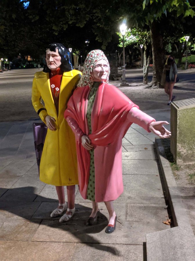 The sisters were popular local characters in Santiago de Compostela in the 1950s and 60s. They died in the early 1980’s but are fondly remembered with these statues in their beloved Alameda Park. The statues represent, especially to the residents, a time of injustice and mistreatment by the regime of General Francisco Franco.