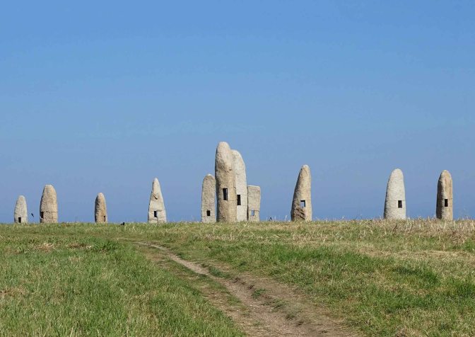In 2003 sculpture Manolo Paz (1957-) created a set of 12 monolithic stones, each with a window opening in its center and named it “Menhirs for Peace”. They are beautiful stones perched on the cliff overlooking the sea, but they are also permeated with sadness and loss. The menhirs represent the hundreds of republican lives brutally taken by Franco and his Nationalist forces during Spain’s Civil War.
