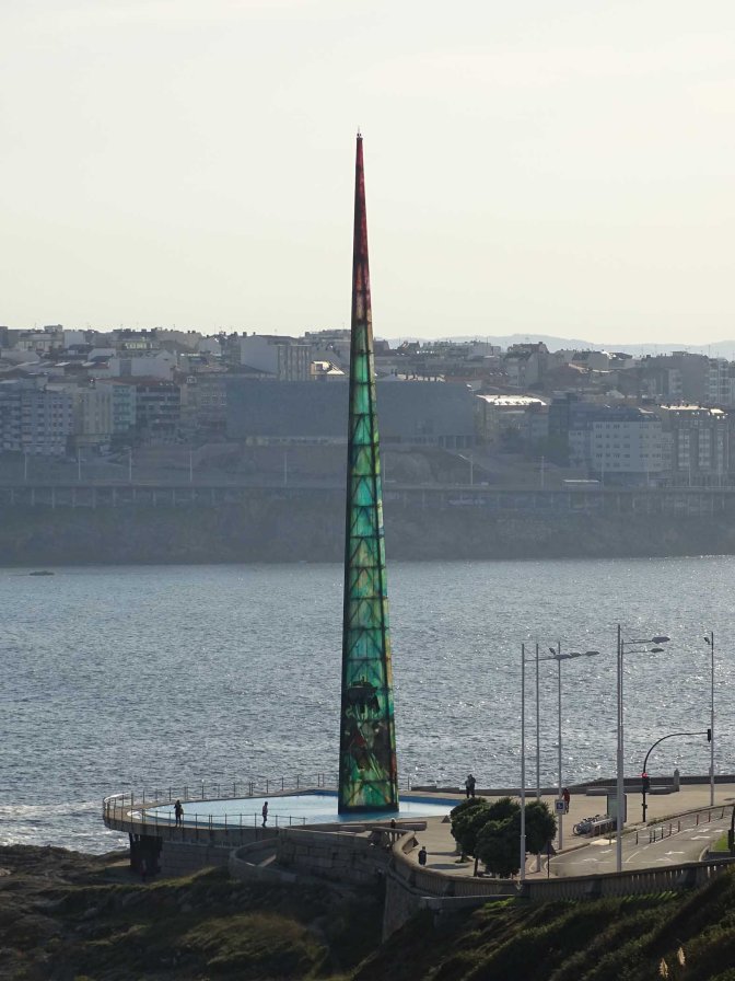 This 150 foot (46 m) tall obelisk located along the promenade was erected to mark the beginning of the 21st century. It is made of steel and rock crystals and the images in the crystals depict A Coruña’s historical events. At night it lights up and the effect makes the tower glow.