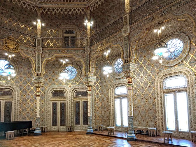 The interior decoration was not completed until 1910 and you will need to pre-book a guided tour to have access to the interior of the Palace. Architect Gustavo Adolfo Gonçalves e Sousa built the magnificent Arab Room (inspired by the Alhambra in Granada) as well as the opulent stairway that leads up from the central courtyard, called the Nations Courtyard, to the upper stories. The absolutely beautiful Arab room, built between 1862 and 1880, is definitely the highlight of the Palace.