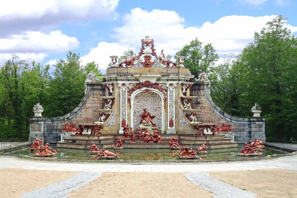 The gardens were also inspired by the design of the gardens of Versailles, with numerous fountains filled with Greek mythological figures and dozens of statues mirroring the extensive fountains and gardens Felipe V grew up with in France.