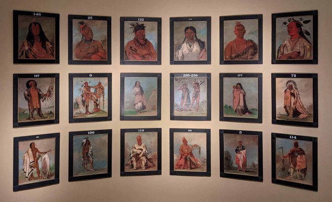American painter George Catlin (1796-1872) specialized in portraits of Native Americans. He traveled through the American West for 8 years during the 1830s writing about and painting portraits and scenes depicting the life of the Plains Indians. After also reading pages from one of Catlin’s published journals “Illustrations of the manners, customs & condition of the North American Indians”, it is clear he demonstrated a gentle curiosity and sensitivity for each of the tribal customs he witnessed and the tribes and chiefs he met. His paintings seem to capture a peacefulness in each individual that posed for him.