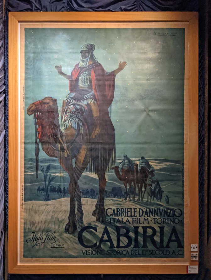 This museum claims that the first 2-hour movie ever filmed was made in 1914 in Turin. There were earlier movies made but none of this length and it was exported worldwide. The acclaimed movie was ‘Cabiria’ and the original poster is below.