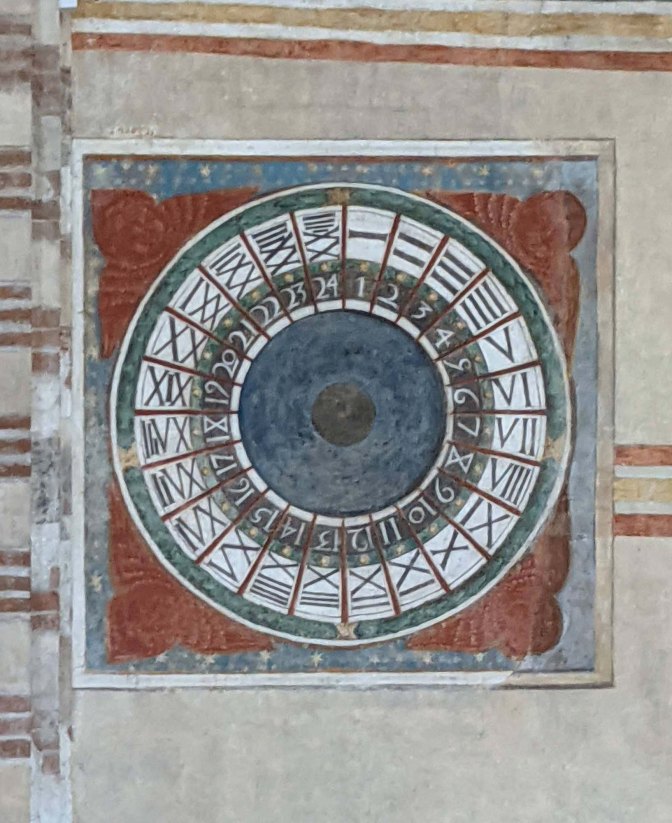 Today we in North America use what was once called the French time: where a clock face is divided into 12 hours and uses two hands, a short hand indicating the hour and a long hand for the minutes. However until the mid 18th century, Italian time was more popular: when the dial is divided into 24 hours and used a single hand.