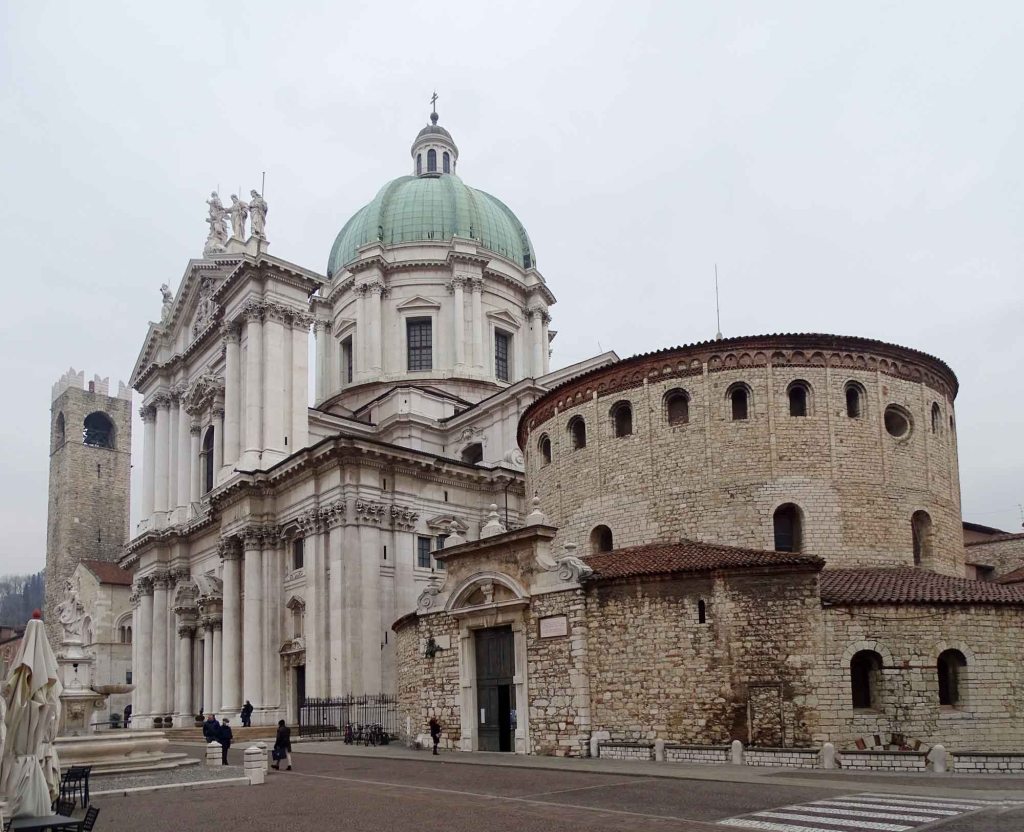 The circular, flat roofed, 11th century old Cathedral of Brescia stands next door to the Duomo Nuovo or New Cathedral. The old Cathedral is known as the Winter Co-Cathedral while the new Duomo Nuovo is called the Summer Cathedral.