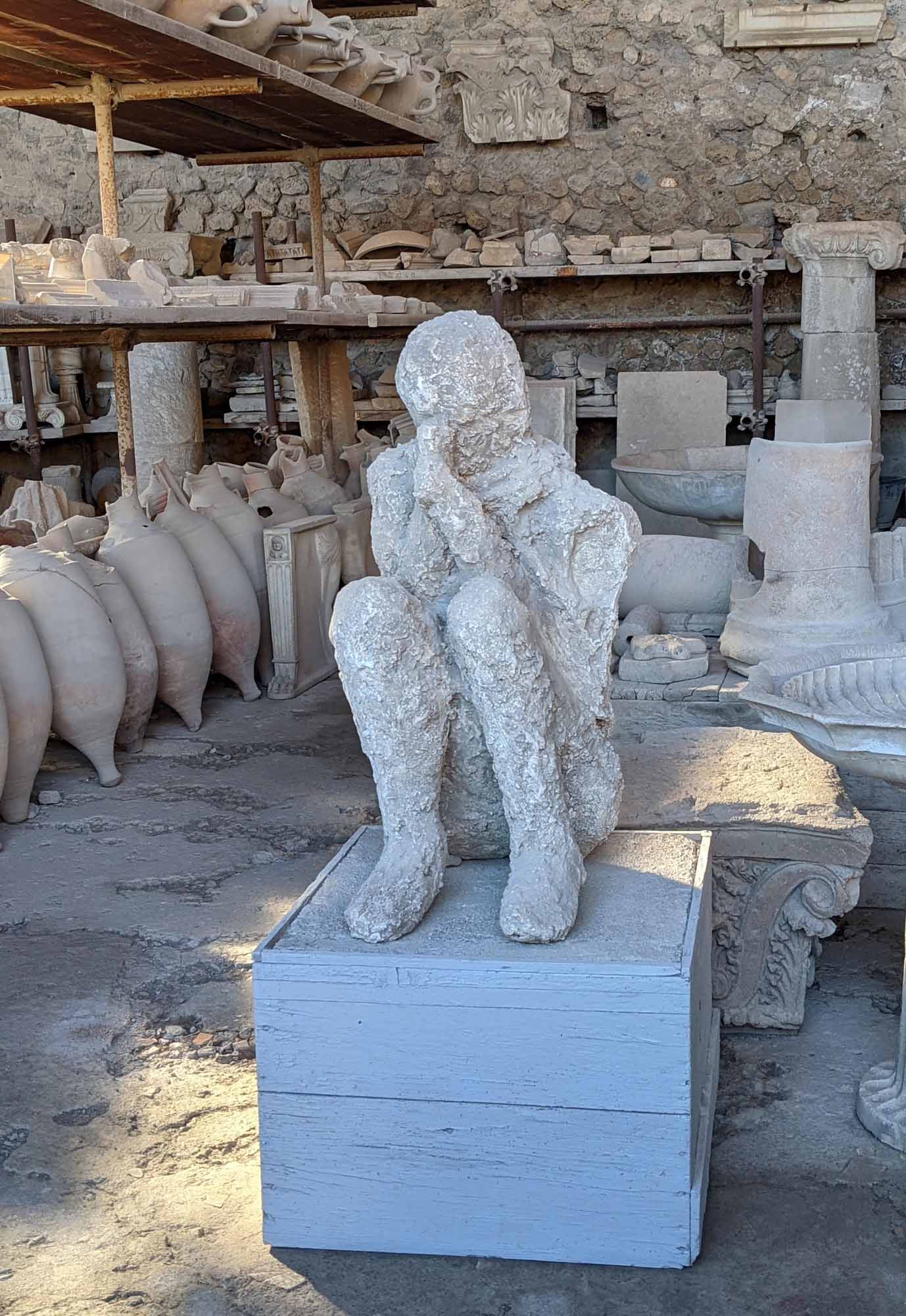 There are not many bodies or casts remaining in Pompeii because most of the artifacts, art, jewelry along with hundreds of human and a few animal casts have been sent to a museum in Naples.