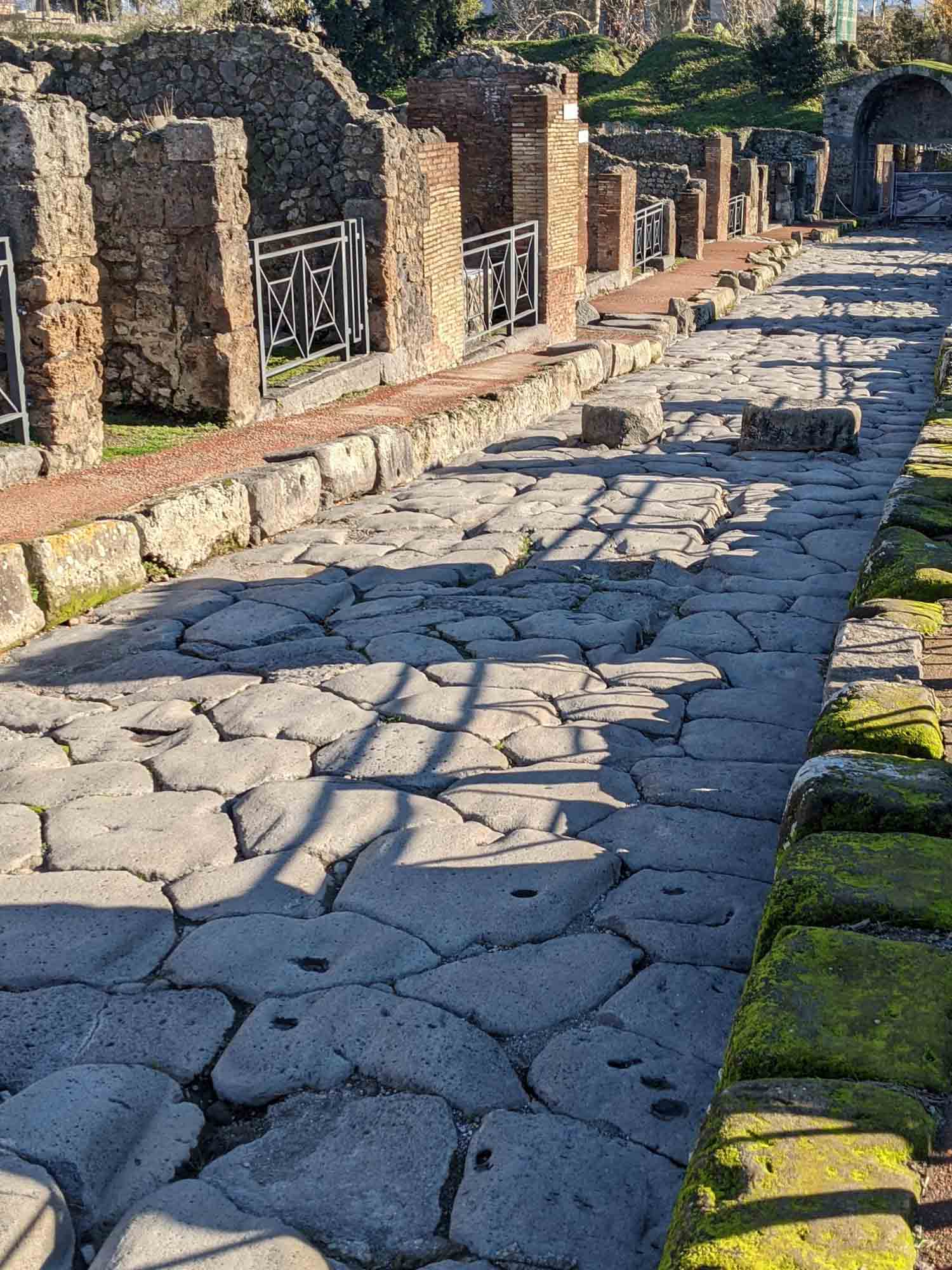 In the 1st century, Pompeii, with its population of approximately 10,000 residents, was a bustling and prosperous city believed to have been a popular vacation destination for wealthy Romans. The elevated sidewalks were paved and there were large stepping-stones pedestrians used to avoid any mud or muck when they crossed the streets. Pompeii offered public baths, bars, restaurants, brothels, forums, gardens, temples, amphitheaters to watch gladiators and chariot races and theaters for live entertainment. We also explored an ancient cemetery, walked past vineyards and through homes that are said to have belonged to wealthy merchants, poets and surgeons.
