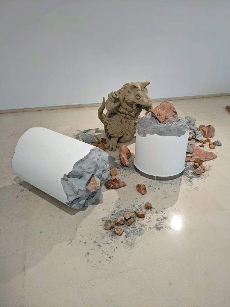 There was a fairly large, fairly bizare exhibition by Valencian artist, Guillermo Ros, (1988-) entitled An Exercise in Violence. It was a collection of scenes of destruction infested by stone rats among broken columns and stones.