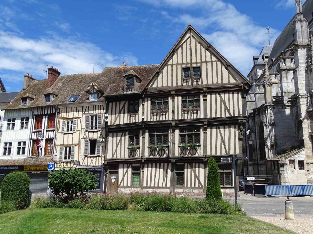 Lining the cobblestone streets in the medieval town of Vernon are dozens of quaint half-timbered houses.