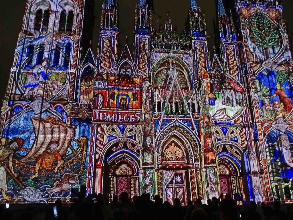 In the summer months, after dark on Friday and Saturday nights there is a lightshow of Rouen’s history projected onto the facade of the large old Cathedral. This year they focused on two stories: the Vikings and Joan of Arc. It was really well done, very colorful and we were able to follow the visual story quite well.