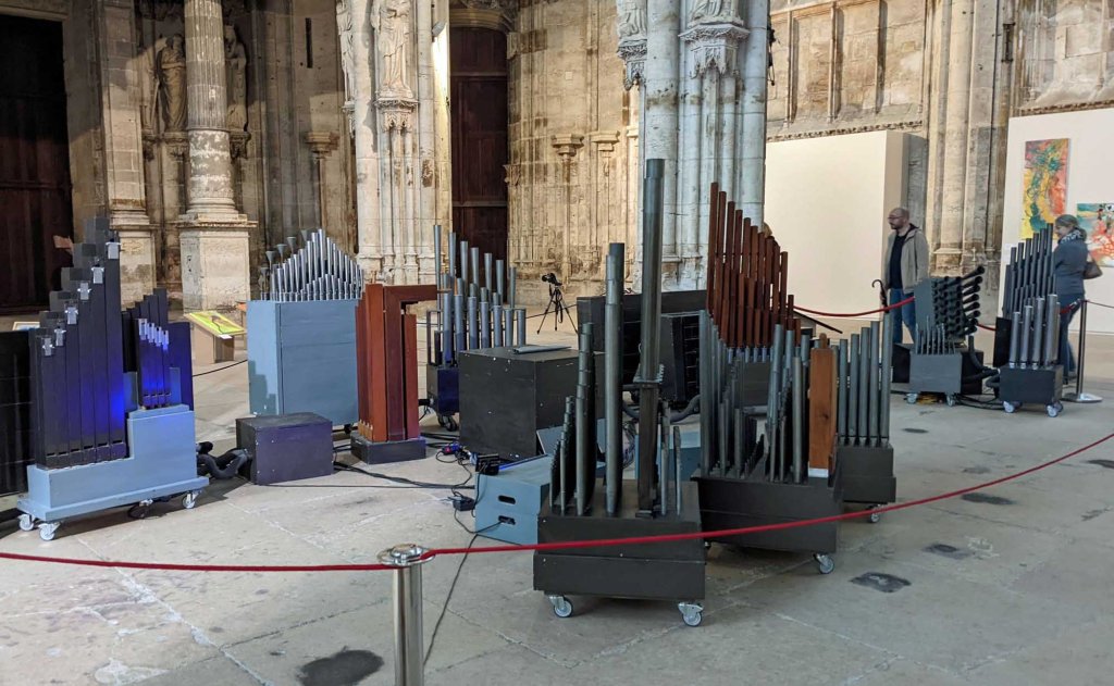 Claimed to be one of the most important church organs in France, it too was covered and being renovated. But, there was an organist playing a small organ when we visited and there was lovely music coming from an eclectic collection of organ pipes set out on the floor next to him.The organist was clearly enjoying himself by directing sounds to various sets of pipes and it was amusing to watch him.