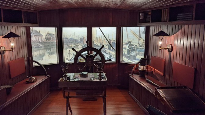 We continued exploring the museum, winding our way up the circular staircase to each new level. On the third floor one entire side of the room was designed to look like the bridge of the Nautilus submarine from 20,000 Leagues Under the Sea.