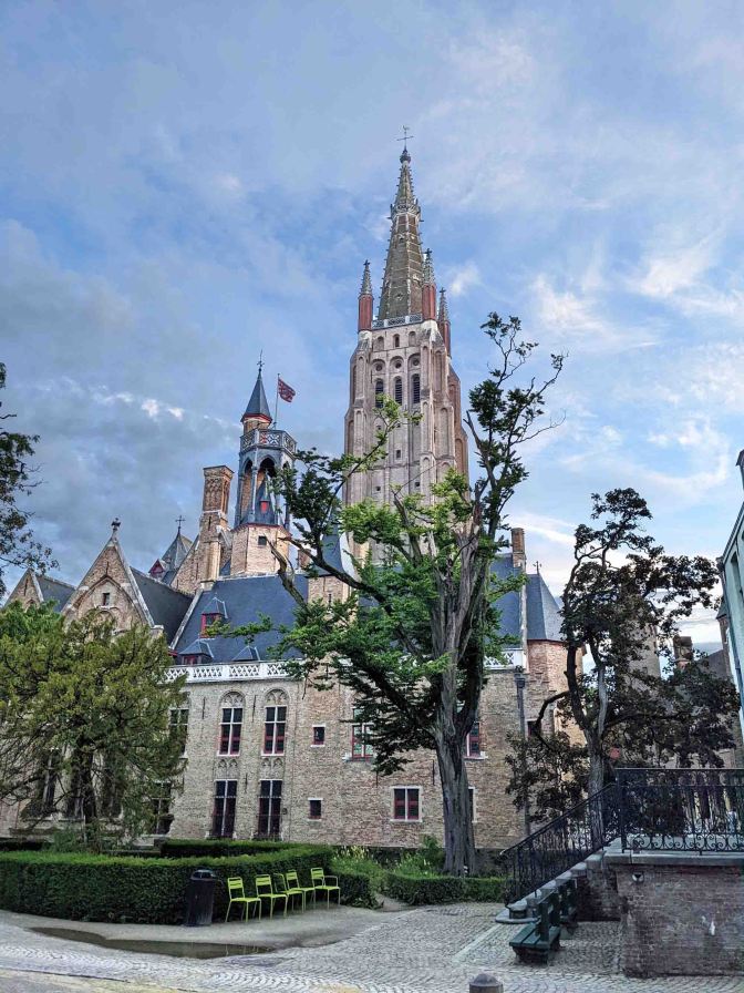 We enjoyed a magnificent view from our apart-hotel living room window of the Church of our Lady’s medieval 380′ (115 m) brick tower.