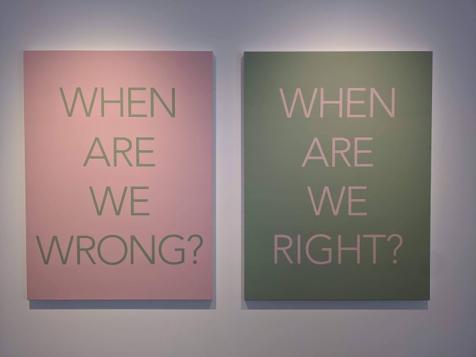 The Art and Exhibition Hall on the Bonn Museum Mile opened in 1992. The center does not have its own collection but instead hosts temporary exhibitions relating to art, culture, history, science, technology and the environment. There are generally 2-4 exhibitions running at any one time. One show we enjoyed was called Color as Program which focused on the impact of color, not only aesthetically but also politically and economically. These two poignant signs by Isaac Chaong Wai (1990-) could apply to the past, present and future.