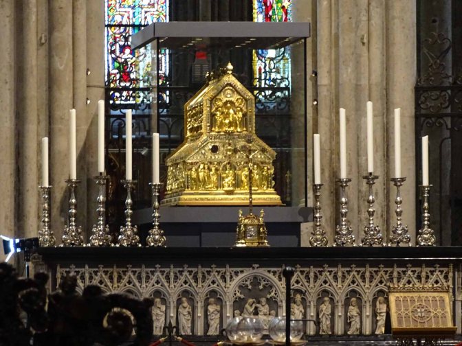 Found in the choir is the Cathedral’s most prized relic, the Shrine of the Three Kings. It is the largest reliquary of the Middle Ages. The shrine was made in 1180-1220 of oak and plated with silver, gold and precious jewels and there are several scenes on its walls.