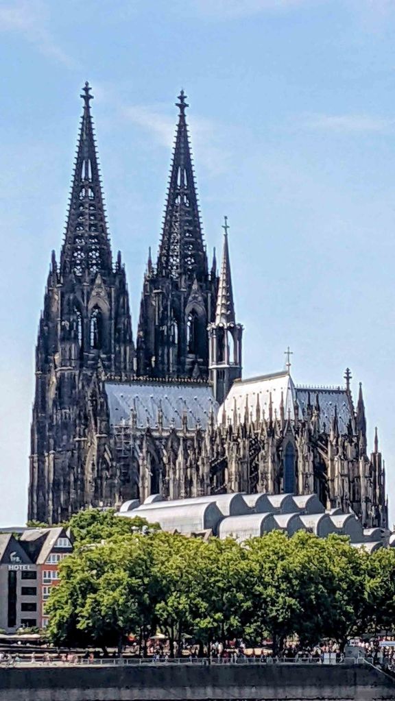 In 1164, the then Archbishop of Cologne, acquired the relics of the Three Kings. To protect these precious relics, construction of the Cathedral began in 1248 and like many other Cathedrals, it was built upon earlier christian structures that had beeb built on even earlier roman temples. Construction was halted and restarted more than a few times over the centuries, but it wasn’t until 1880 that the cathedral, 632 years after construction began, was completed and celebrations could begin. Visitors may climb 533 stone steps up the spiral staircase to a viewing platform about 330 feet (100 m) above the ground…..um, not for us.