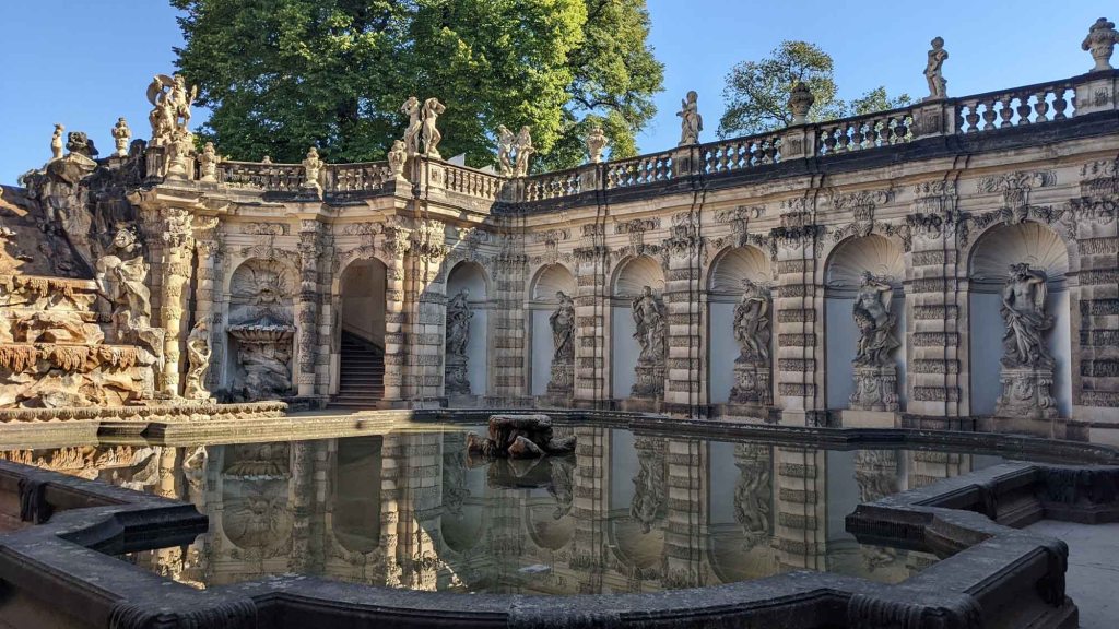 In 2021 small orange trees were planted in large vases in the square, reminiscent of the Zwinger’s origins. Our airbnb was very nearby and we were lucky to be able to walk past and through the glamorous baroque palace daily.