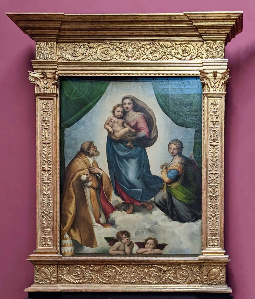 In 1754, considered the crowning acquisition of the entire collection, Raphael’s, now priceless, Sistine Madonna, arrived in Dresden. You will definitely recognize the two angels looking up from the bottom of the painting. Can you also see the dozens of children’s faces in the clouds that surround the Madonna?